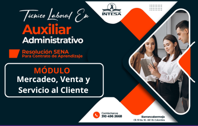 El módulo Mercadeo, Venta y Servicio al Cliente fortalece las competencias necesarias para promover productos o servicios, aplicar estrategias comerciales y brindar una atención de calidad que garantice la satisfacción y fidelización del cliente.